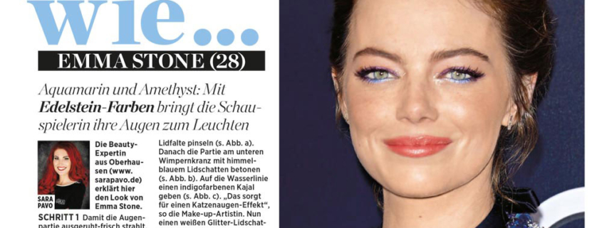 “Aquamarin und Amethyst: Mit Edelstein-Farben bringt die Schauspielerin ihre Augen zum Leuchten (..)” in der April Ausgabe des inTouch Magazins gibt Sara Pavo Beauty-Tipps zum Look von Emma Stone. 🌺🌺🌺