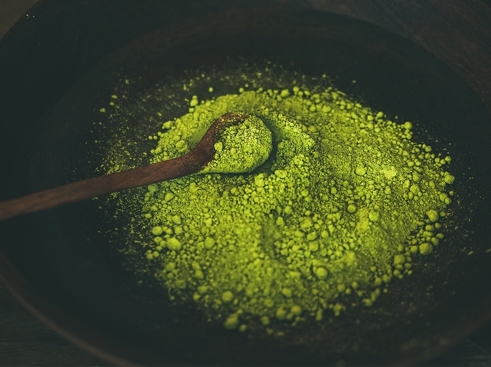 Traditionell wird das Matchapulver mit 80 °C heißem Wasser übergossen und mit einem Bambusbesen (alternativ dem Schneebesen oder Milchschäumer) schaumig gerührt. Wer will, kann den Tee süßen oder mit Milch zubereiten. Doch bei hochwertigem Matcha ist das nicht nötig, denn der schmeckt mild, frisch, ein wenig nussig und nach Wiese, doch nicht unangenehm bitter, algig oder „sumpfig“ wie manche Billigprodukte.