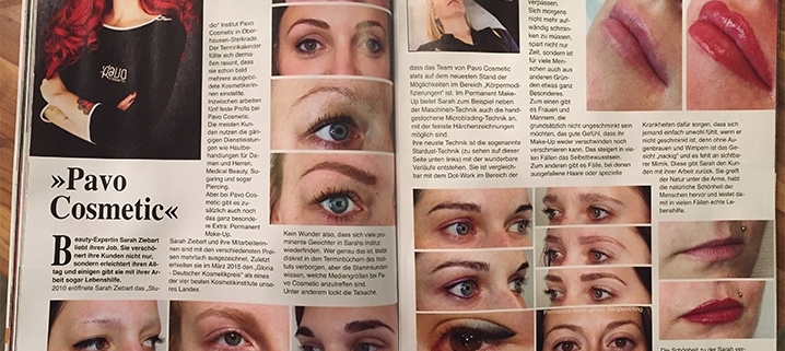 Aber bei Pavo Cosmetic gibt es zusätzlich auch noch das ganz besondere Extra: Permanent Make-Up. Sarah Ziebart und ihre Mitarbeiterinnen sind mit den verschiedensten Preisen mehrfach ausgezeichnet. Zuletzt erhielten sie im März 2015 den „Gloria – Deutscher Kosmetikpreis“ als eines der vier besten Kosmetikinstitute unseres Landes. [..]”