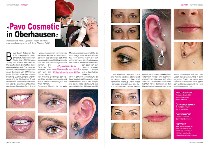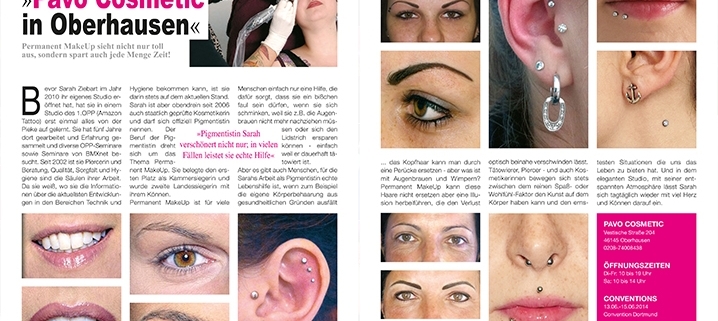Permanent MakeUp ist für viele Menschen einfach nur eine Hilfe, die dafür sorgt, dass sie ein bißchen faul sein dürfen, wenn sie sich schminken, weil sie z.B. die Augenbrauen nicht mehr nachziehen müssen oder sich den Lidstrich ersparen können – einfach weil er dauerhaft tätowiert ist. Aber es gibt auch Menschen, für die Sarahs Arbeit als Pigmentistin echte Lebenshilfe ist, wenn zum Beispiel die eigene Körperbehaarung aus gesundheitlichen Gründen ausfällt das Kopfhaar kann man durch eine Perücke ersetzen – aber was ist mit Augenbrauen und Wimpern? Permanent MakeUp kann diese Haare nicht ersetzen aber eine Illusion herbeiführen, die den Verlust optisch beinahe verschwinden lässt. Tätowierer, Piercer – und auch Kosmetikerinnen bewegen sich stets zwischen dem reinen Spaß- oder Wohlfühl-Faktor den Kunst auf dem Körper haben kann und den ernstesten Situationen die uns das Leben zu bieten hat. Und in dem eleganten Studio, mit seiner entspannten Atmosphäre lässt Sarah sich tagtäglich wieder mit viel Herz und Können darauf ein.”